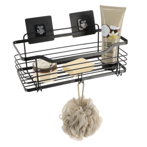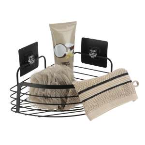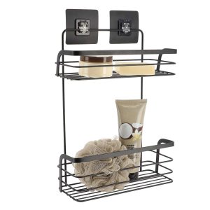 Tendance polica za tuš sa 3d ljepljivom trakom dvostruka pravokutna, crna