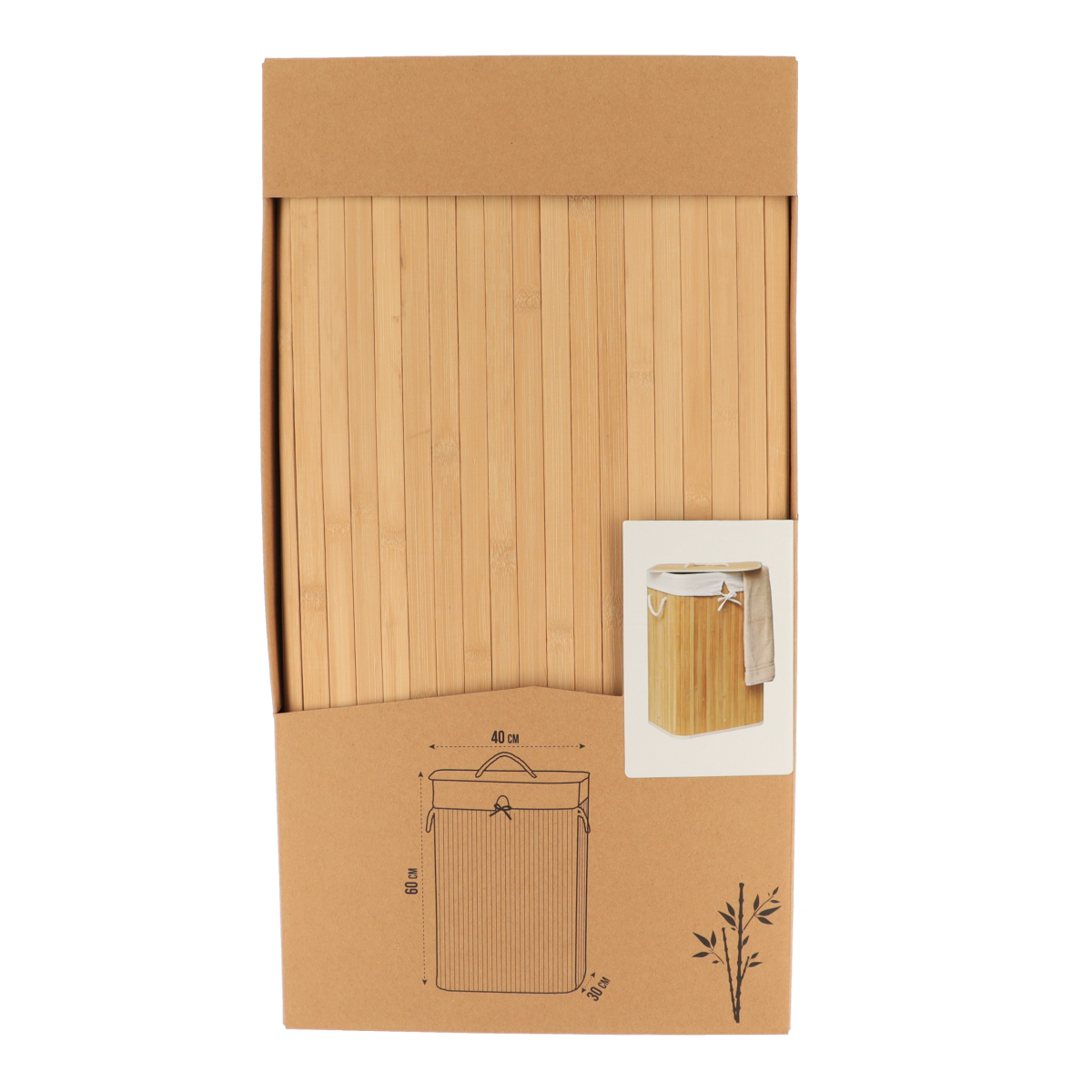 Košara za rublje s lakoćom će sakriti prljavo rublje, ali može biti i dekorativan element u Vašoj kupaonici. Izrađena od bambusa, a iznutra je obložena tekstilnim umetkom. Dimenzija: 60x40x30cm.