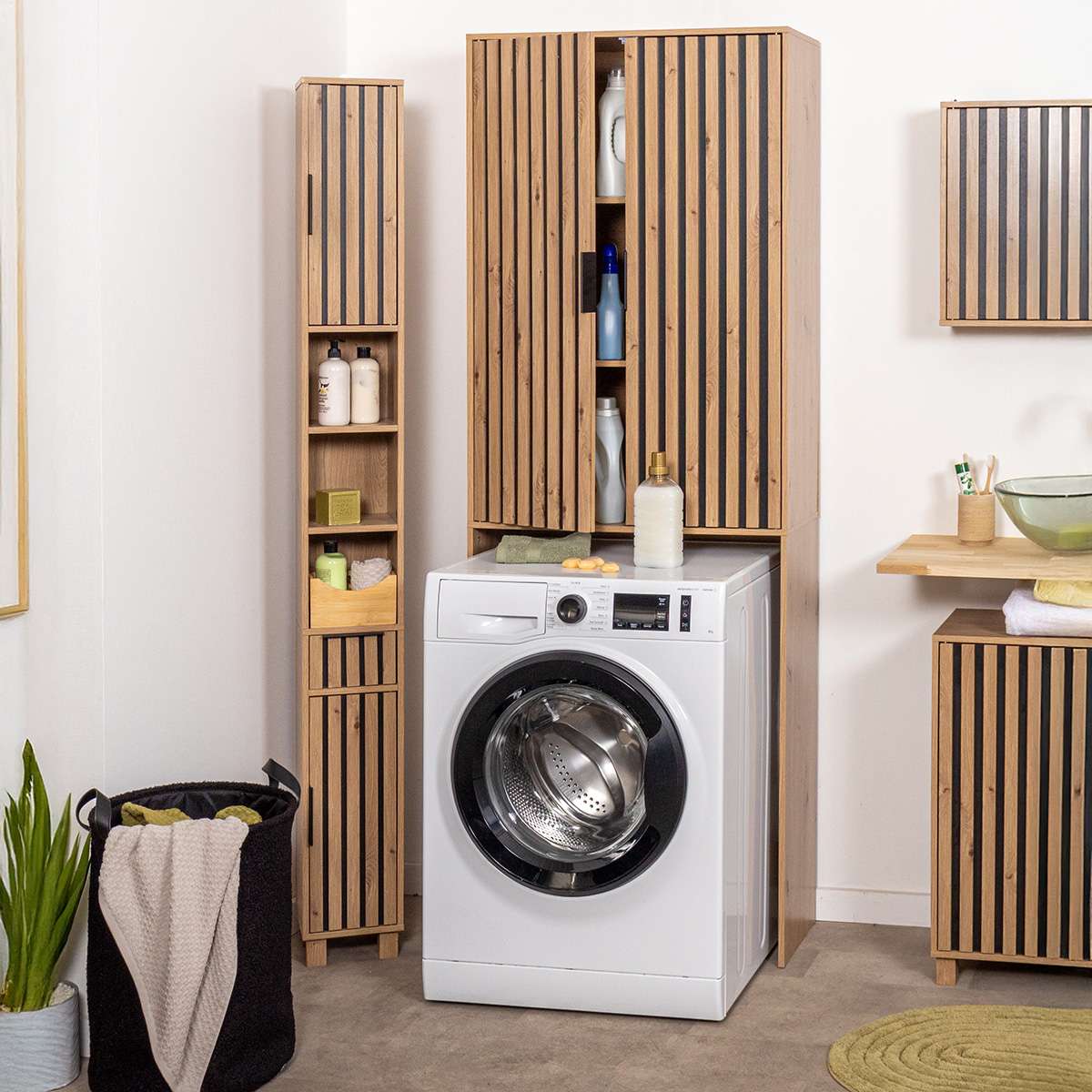 Ormarić Karma s dva vrata i dvije unutarnje police, MDF. Dimenzije: 60x30x70 cm. Kompaktan i elegantan dodatak prostoru iznad perilice ili WC-a.